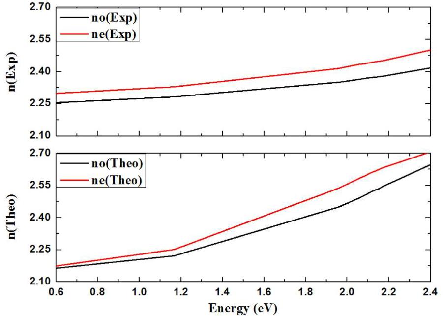 Experimental and theoretical refractive indexes of InPS4 in low frequency region.