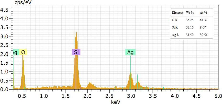 EDX spectrum of the obtained Ag/SiO2 composite.