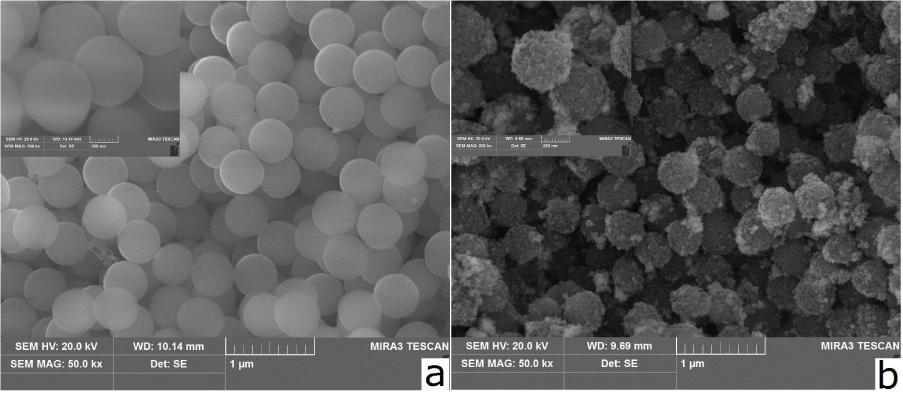 SEM images of (a) SiO2 and (b) Ag/SiO2 com-posites.