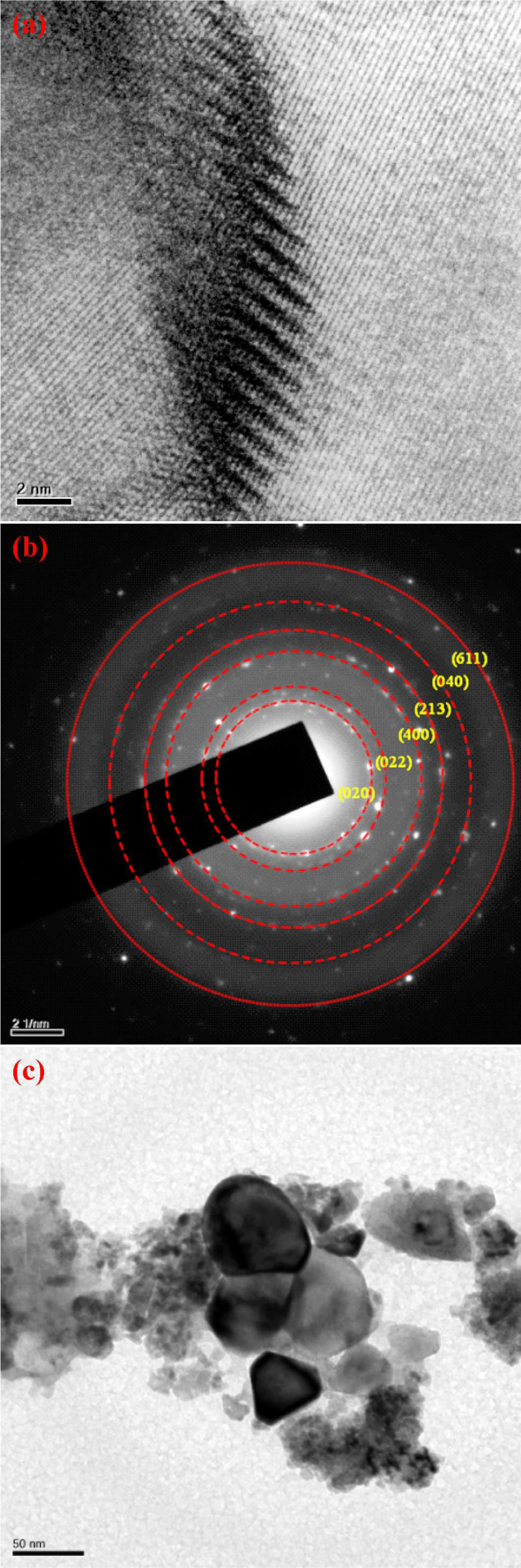 All the images show spherical structured nanoparticles with high crystallinity [11]. The selected area electron diffraction (SAED) pattern shows the perovskite phase with all major reflection peaks which were indexed, accordingly [7, 14]. It exhibits the superimposition of all the bright reflection spots, such as (0 0 2), (0 2 2), (4 0 0), (2 1 3), (0 0 4), (6 1 1), corresponding to orthorhombic phase with equal lattice arrangement of BCG nanoparticles [15].