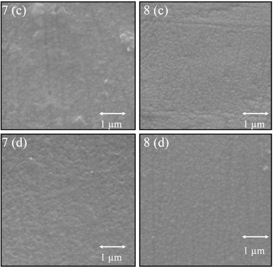 SEM images of Ti thin films deposited in diode mode at the target power of (a) 60 W, (b) 80 W, (c) 100 W and (d) 120 W.