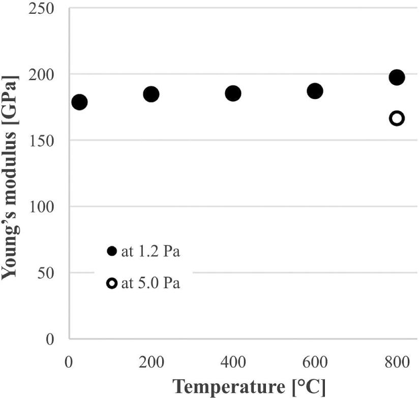 Young’s modulus of coatings obtained at different substrate temperatures.