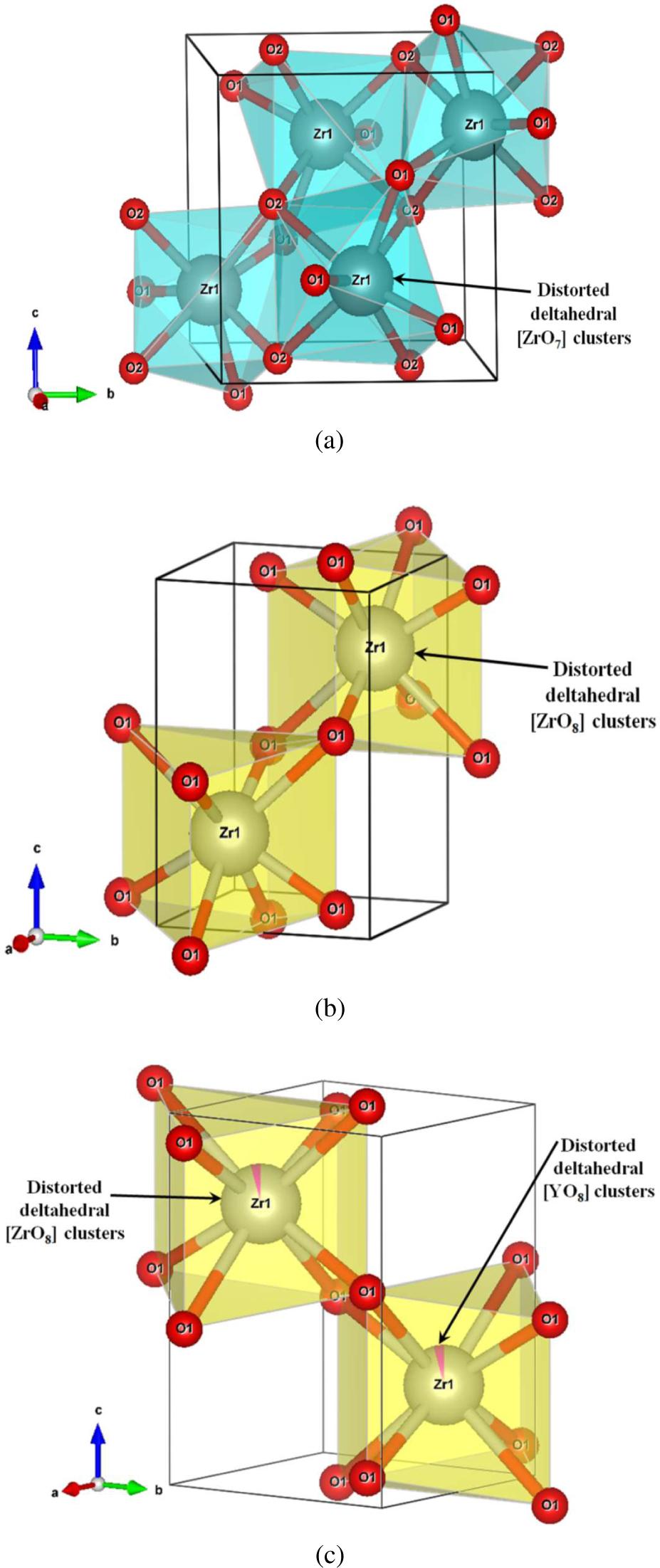 | [Phase 1: ZrO2; P21/c (14) – Monoclinic (a = 5.18449(8), b = 5.21618(4) Å, c = 5.32812(7) Å; V = V=142.22(3) Å3; β = 99.23(8)° and Z = 4)] and [Phase 2: ZrO2; P42/nmc (137) – Tetragonal (a = b = 3.5792 Å, c = 5.1782 Å; c/a = 1, V = 66.34 Å3; Z = 2]; Rp = 6.785 %; Rwp = 11.835 %; Rexp = 6.218 %; χ2 = 3.6214 and GoF = 1.903. Weights of the phases in the ZrO2 Monoclinic = 49.17 % and ZrO2 Tetragonal = 50.83 %. | |||||