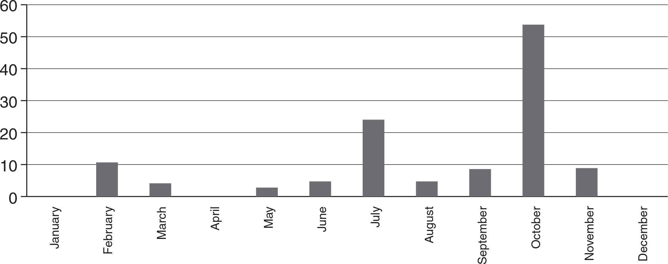 Swedish printed media published a total of 124 articles about the Ministerial negotiation round in 2013. These 124 articles were spread across almost 50 different publications and most media only published one or two articles on the theme. About 95 per cent of the articles were published in newspapers (local and national). There was also a clear pattern that the reporting about BSAP and this case mainly came out in July and October 2013 (about 80 per cent) (Figure 1) and that this was closely linked to the events and actions taken by the key stakeholders.(3)