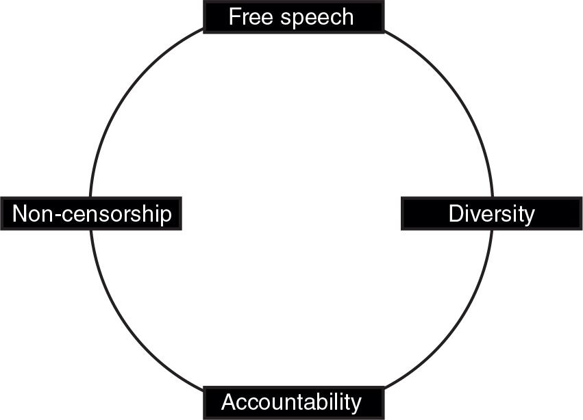 The state’s enabling function for democratic free speech is highlighted explicitly in Sweden, where state policy has a role in promoting and deepening democracy through safeguarding free speech (SOU 1975: 79, p.126; SOU 1995: 37, p.156) and to create prerequisites for plurality (Dir. 2015: 26, p.2). However, rhetoric about this aspect of free speech may be changing. For example, a 2015 official government report on media policy (SOU 2015: 94, p.37) describes the state’s relationship to free speech in ambiguous terms. It suggests: “Every aspect of state governance can … be interpreted as infringements of these fundamental freedoms” of speech and information, but it also reaffirms the state’s purpose in media policy is “to create as free a society as possible where diversity of media can secure the rights and interests of all citizens”.(3) In these statements, at least in the first one, it is almost as if free speech is being reduced to the absence of censorship rather than also encompassing diversity of voices.