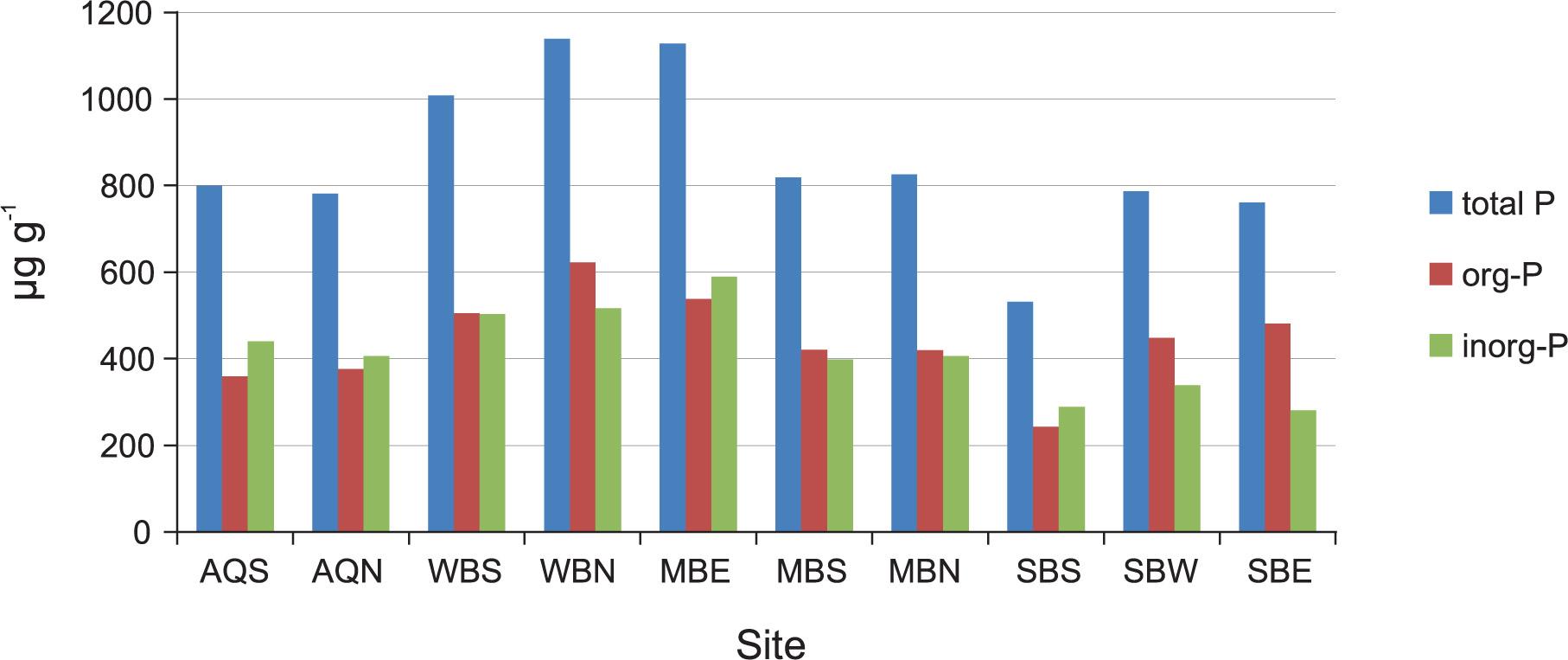 Phosphorus is one of the most important limiting nutrients for the growth of phytoplankton and terrestrial ecosystems (Hudson-Edwards et al. 2014). The phosphorus cycle is characterized by the accumulation of inorganic phosphorus, degradation of organic phosphorus, and interaction of phosphate with metal oxides in the sediment (Wang et al. 2013). The phosphorus content in surface lake sediments depends on the sediment composition, the sedimentation rate, the physicochemical conditions and the extent of digenetic processes (Anshumali & Ramanathan 2007).