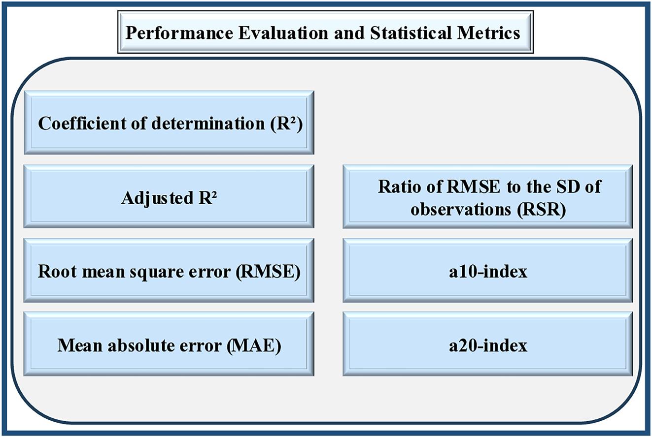 Every model is subjected to a comprehensive assessment procedure, which involves computing a range of performance indicators to evaluate its effectiveness (Figure 8). The mathematical formulations for these statistical indices are provided in Eqs. (1–6).