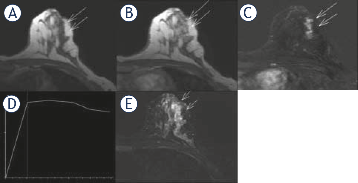 Standard dynamic contrast-enhanced magnetic resonance imaging (DCE-MRI) protocol for axial-plane images for T1-weighted FLASH 3D precontrast and five postcontrast series