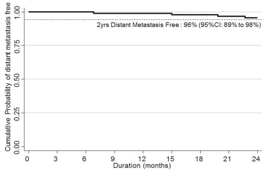 Kaplan-Meier estimate of distant metastasis free survival (DMFS).