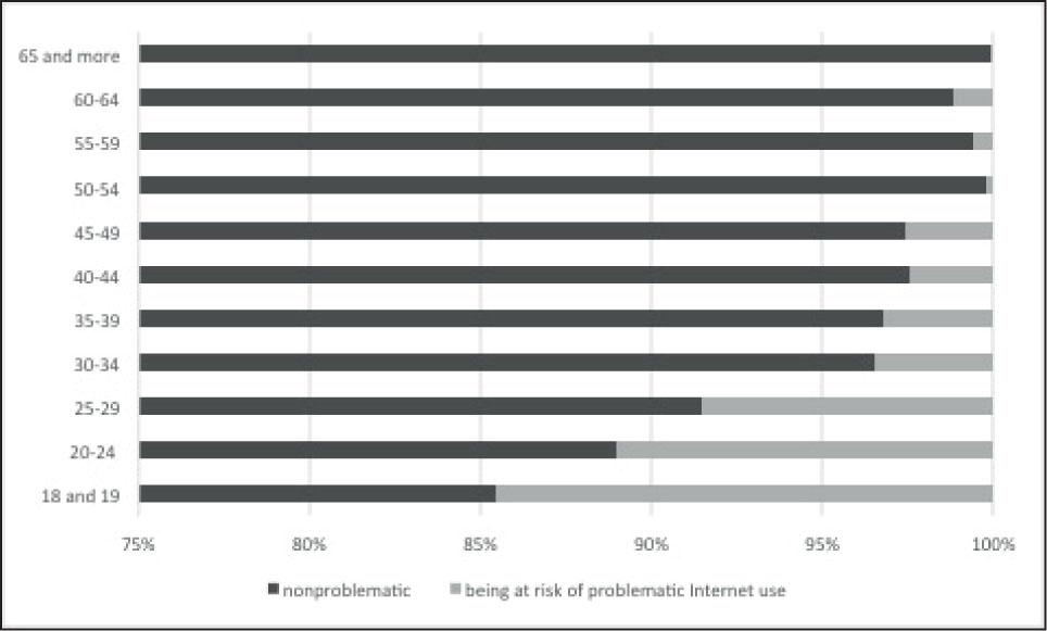 | non-problematic | being at risk of problematic use | Total | Χ2(sig. χ2) | |||||||