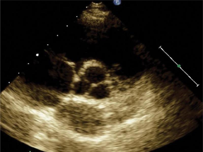 When assessing the valves, attention should be paid to the presence of additional cusp echoes (bacterial vegetations, clots, tumors). The use of different projections allows for an assessment of large vessels: the aorta, pulmonary arteries, superior and inferior vena cava, pulmonary veins, coronary sinus and hepatic veins. They are assessed for their width, and the presence of additional echoes within their lumens (clots, tumors, vascular grafts, catheters and electrodes); the thoracic aorta is assessed for wall dissection, periannular or periprosthetic abscesses, and stenotic isthmus.