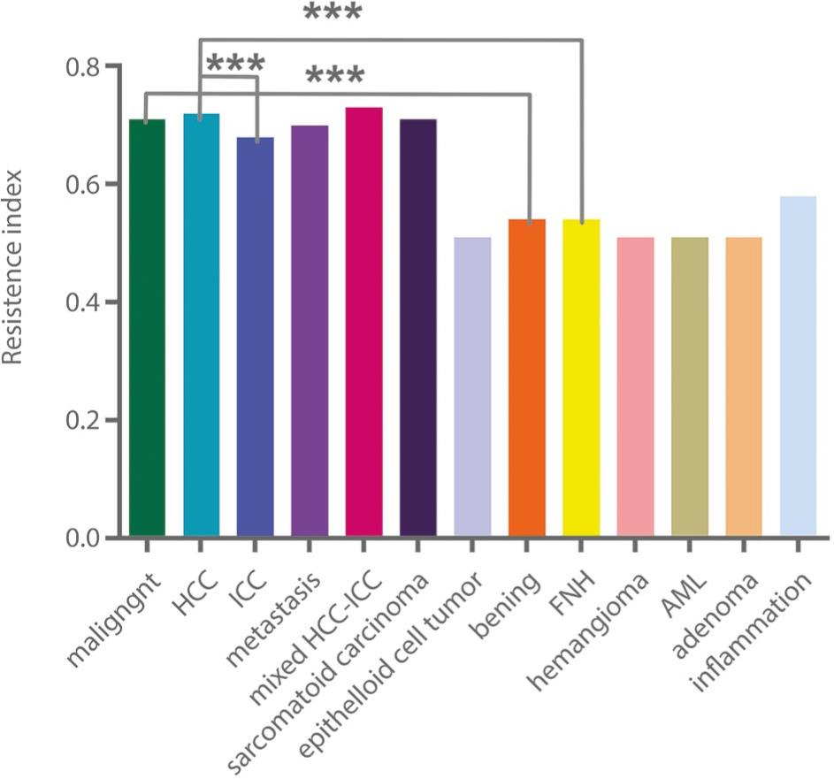 Comparison of resistance index in hepatocellular carcinoma (HCC)