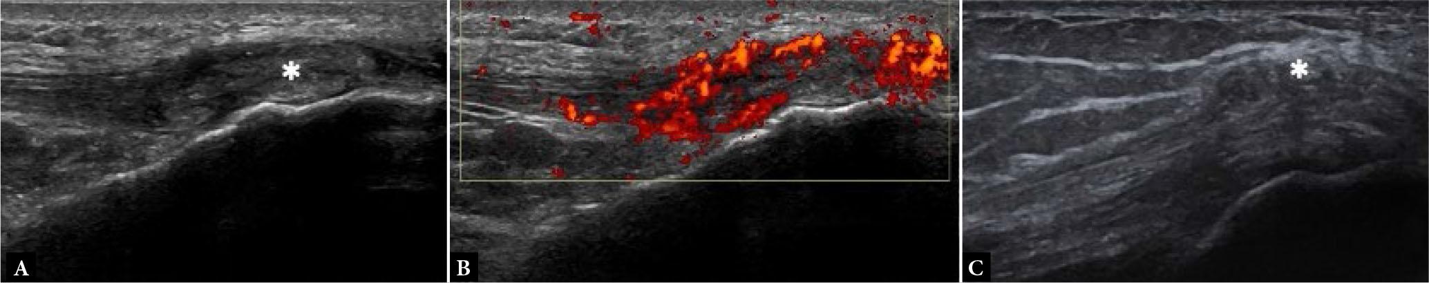 Bao et al.(21) concluded that US could be as sensitive and specific as contrast-enhanced MRI for the diagnosis of subclinical synovitis and tenosynovitis.