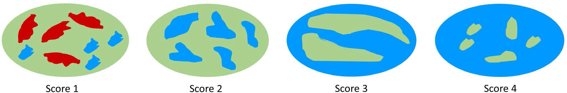 Elastography score based on color map ranging from score 1 (soft) to score 4 (hard)