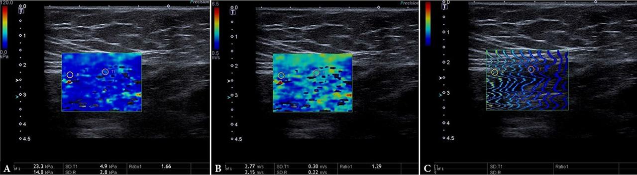 | Ratio of SWE (m/s) | 1.02 (0.68–1.61) | 1.83 (1.21–2.43) | 1.74 (1.15–3.45) | <0.001 |