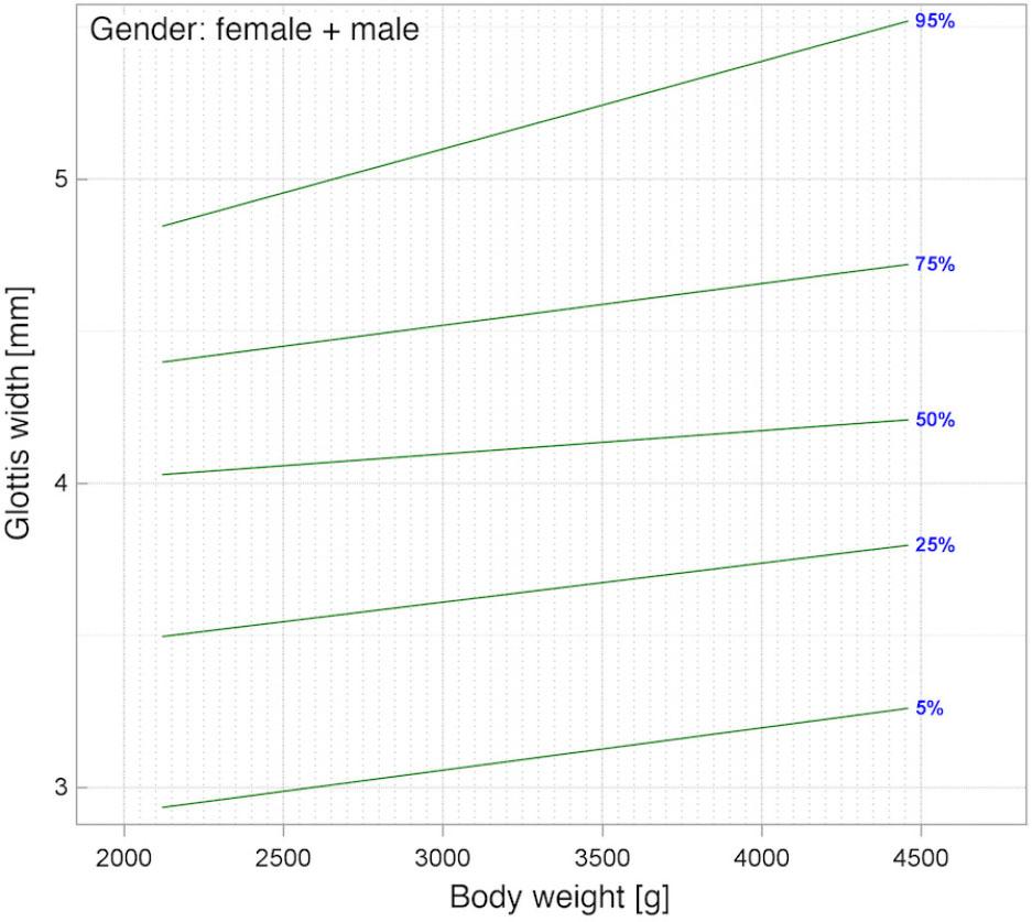 As measurements of newborn length can be inaccurate depending on the technique used and the examiner’s experience, and due to the weak, mostly statistically insignificant correlations between larynx and trachea measurements, the researchers decided to develop percentile charts based solely on body weight.