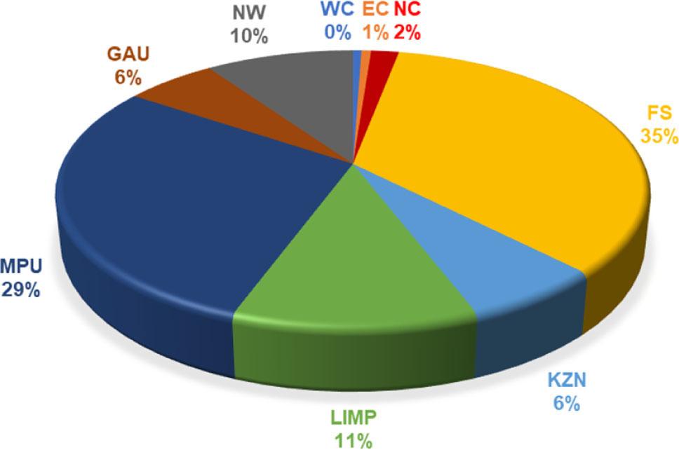 The 20-year average for provincial contribution to national production is presented in Fig. 3. The biggest role players in the system are Free State, Mpumalanga and Limpopo, contributing 35%, 29% and 11%, respectively. The poorest contributors were Western Cape, Eastern Cape and Northern Cape, contributing less than 1%, 1% and 2%, respectively.