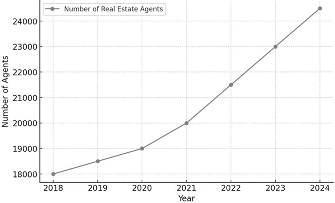 Figure 2 illustrates the number of real estate agents in Poland from 2018 to 2024.