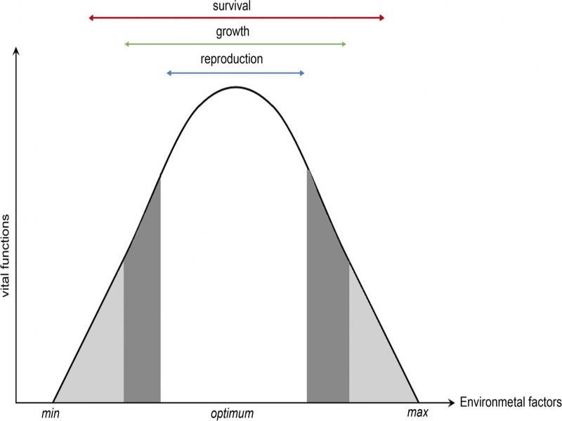 Shelford’s universal ecological law says that the optimal development of any organism depends on the balance of a complex of environmental factors [36]. The ecological tolerance is a range of any factor (abiotic or biotic) in which the organism can exist, i.e. perform physiological processes. However, the maximum growth, activity and reproduction of each organism take place within the limits of the optimum occurrence of a given environmental factor (Fig. 2). This also applies to soil microorganisms.