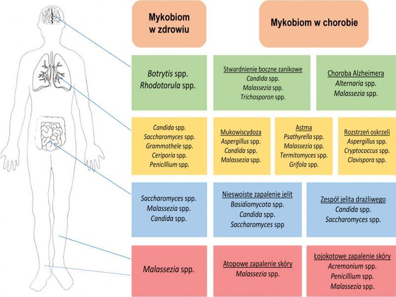 Skład gatunkowy mykobiomu różnych narządów w stanie zdrowia i w wybranych jednostkach chorobowych