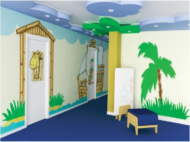 Colorful graphics on the walls of the clinic and pediatric hospitals is a permanent phenomenon. The wall barriers covered with wallpapers, photographic wallpapers or stickers are still yet more popular than inmass colored or silkscreen covered glass. The purpose for decorating walls or ceilings in this way is the lower cost along with the possibility for more frequent arrangement modifications.