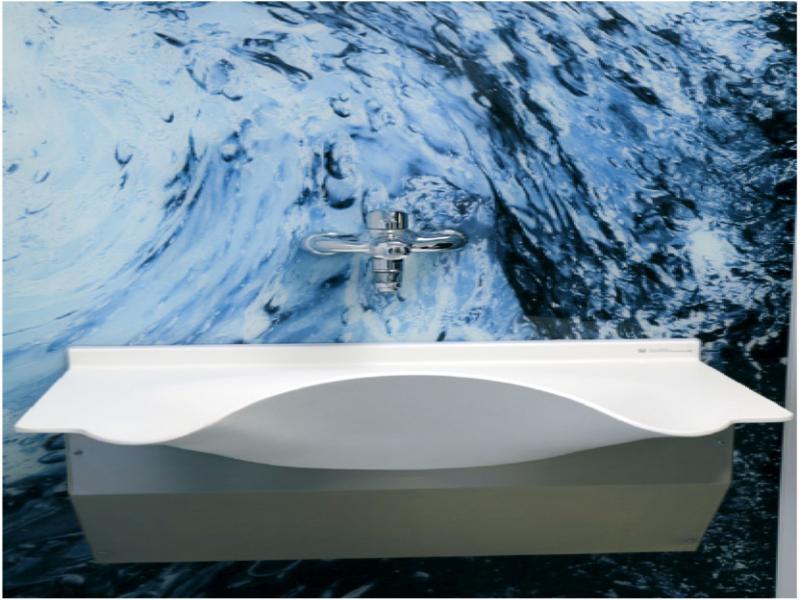 The previously mentioned solid surface material – Corian, consisting in 2/3 of minerals and in 1/3 of acrylic resin, has gained popularity in medical institutions due to its durability (no discoloration, no loss of physicochemical characteristics due to prolonged use), non-porosity and the jointless connection. For the sake of its elasticity at forming shapes it is also used to make worktops and wash basins.