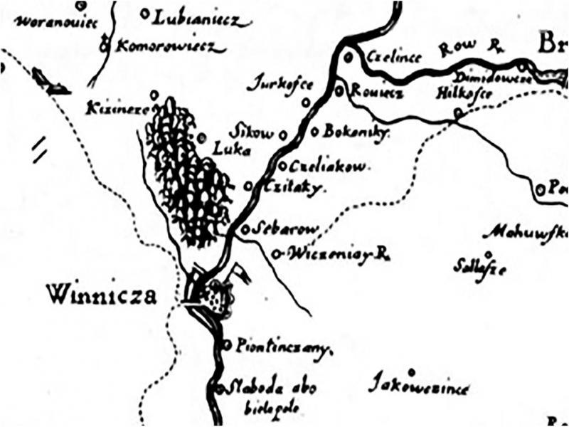 Vinnytsia on the special map by G. de Boplan, 1650. (North at the bottom) [13]