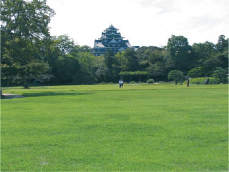 Public garden Kōraku-en, Okayama, build in 1700 r. (Edo period), one of three most beautiful gardens in Japan, composed with borrowed scenery of Okayama Tenshu-kaku castle (today: national special scenic spot) Photo: A. Sas-Bojarska