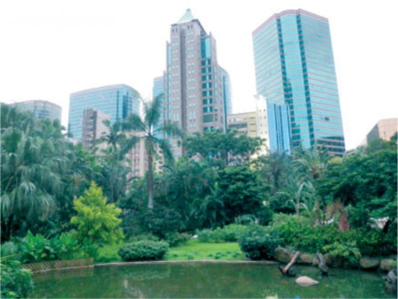 West Kawloon – artistic cultural district of Hong-Kong; beautifully landscaped garden (favored even by flamingoes), surrounded by high-rise residential and commercial buildings. Photo: A. Sas-Bojarska