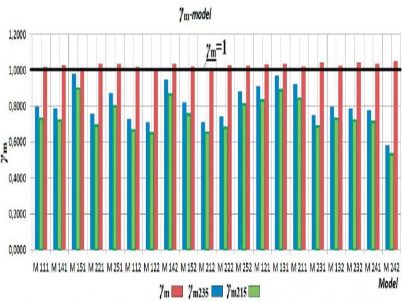 That is confirmed by the obtained values of partial factors of yield strength γm, which are marked in Fig. 11. The boundary of partial factor of yield strength, which separates the characteristic value of yield strength from the design one is represented as a continuous line.