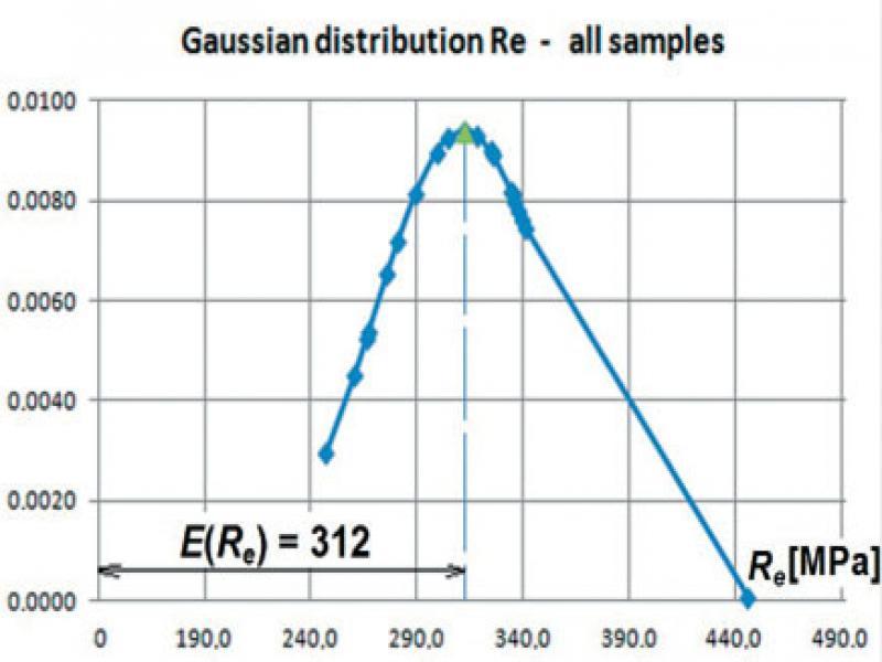 where: E(Re) – the mean value of yield strength Re, VRe – coefficients of variations yield strength Re