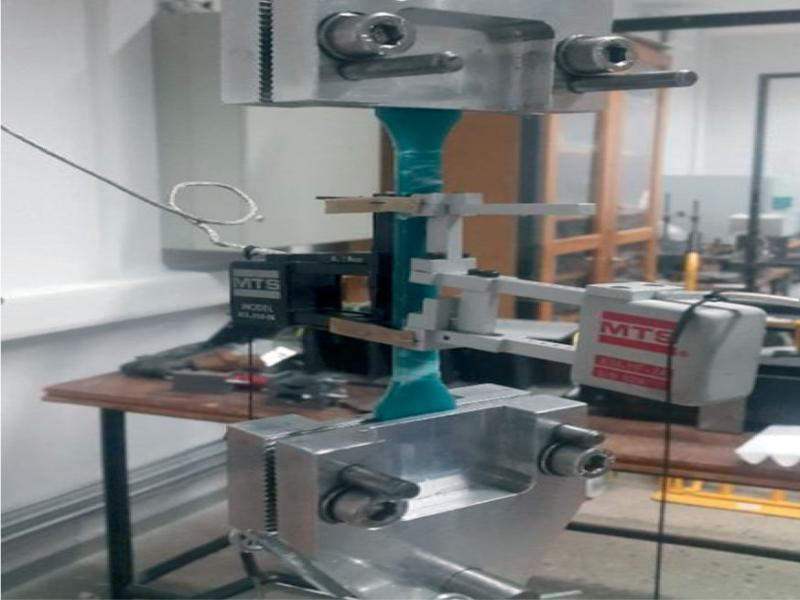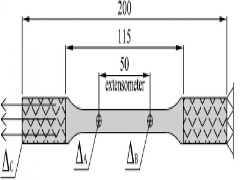 Numerical simulations using FEM have shown that extensometers are required for testing of adhesives. Unsymmetrical anchorage or too large base length of the extensometer may cause distortion of results due to the transition zone in the tapered part of the sample, where the first plastic deformation appears.