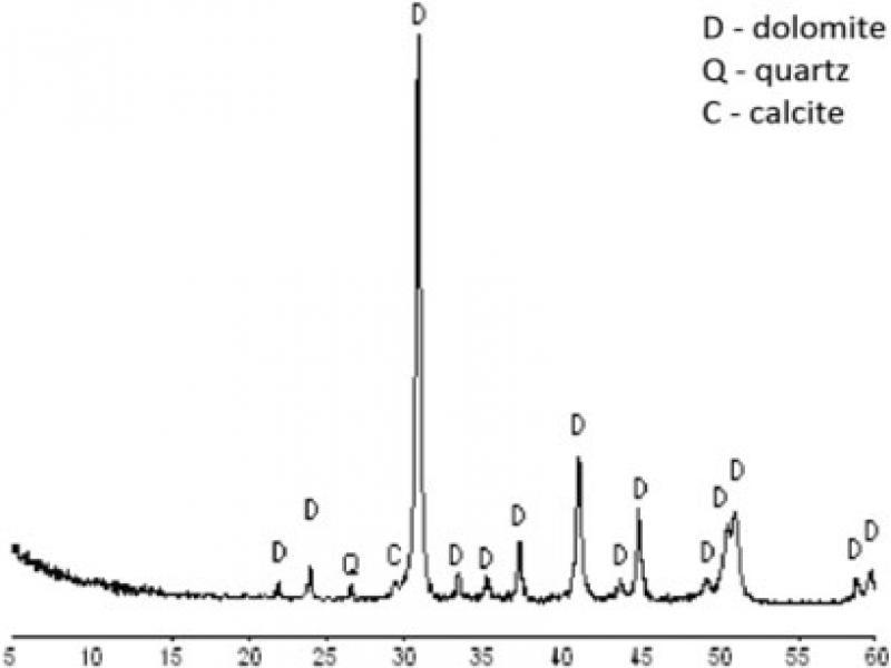 Diffraction pattern of dolomite sample