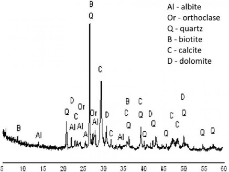 Diffraction pattern of gravel sample (granite/limestone/ dolomite)