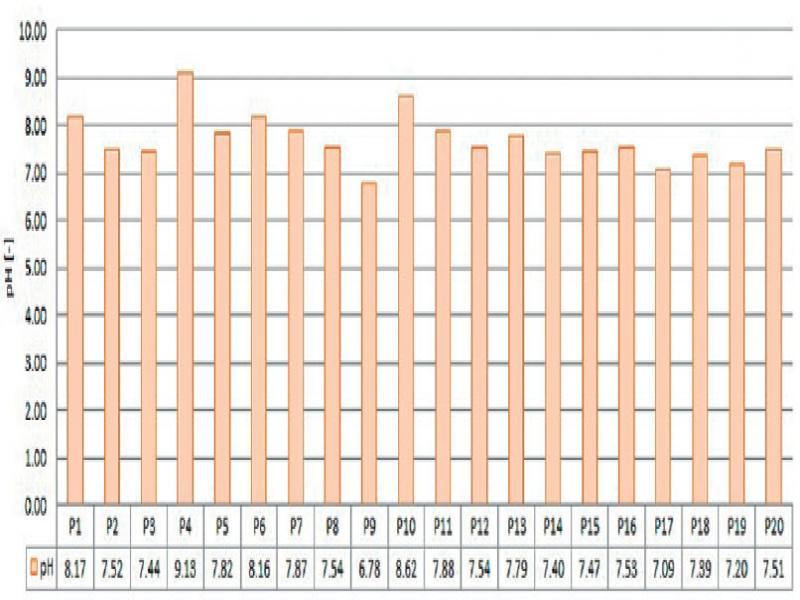 | pH | [-] | 8.17 | 7.52 | 7.44 | 9.13 | 7.82 | 8.16 | 7.87 | 7.54 | 6.78 | 8.62 | 7.88 | 7.54 | 7.79 | 7.40 | 7.47 | 7.53 | 7.09 | 7.39 | 7.20 | 7.51 | 6.50-9.00 |