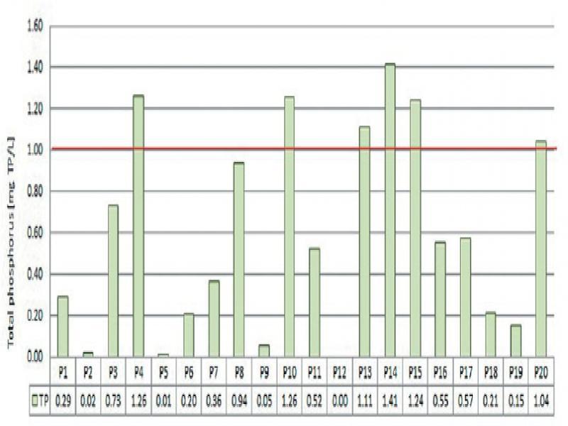 | Total phosphorus (TP) | [mg TP/L] | 0.29 | 0.02 | 0.73 | 1.26 | 0.01 | 0.20 | 0.36 | 0.94 | 0.05 | 1.26 | 0.52 | - | 1.11 | 1.41 | 1.24 | 0.55 | 0.57 | 0.21 | 0.15 | 1.04 | 1.00 |