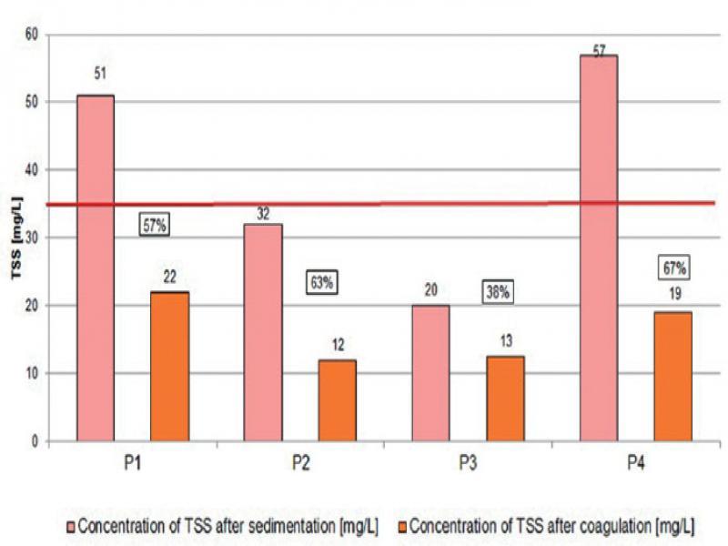Comparison of TSS content in supernatants after sedimentation and coagulation