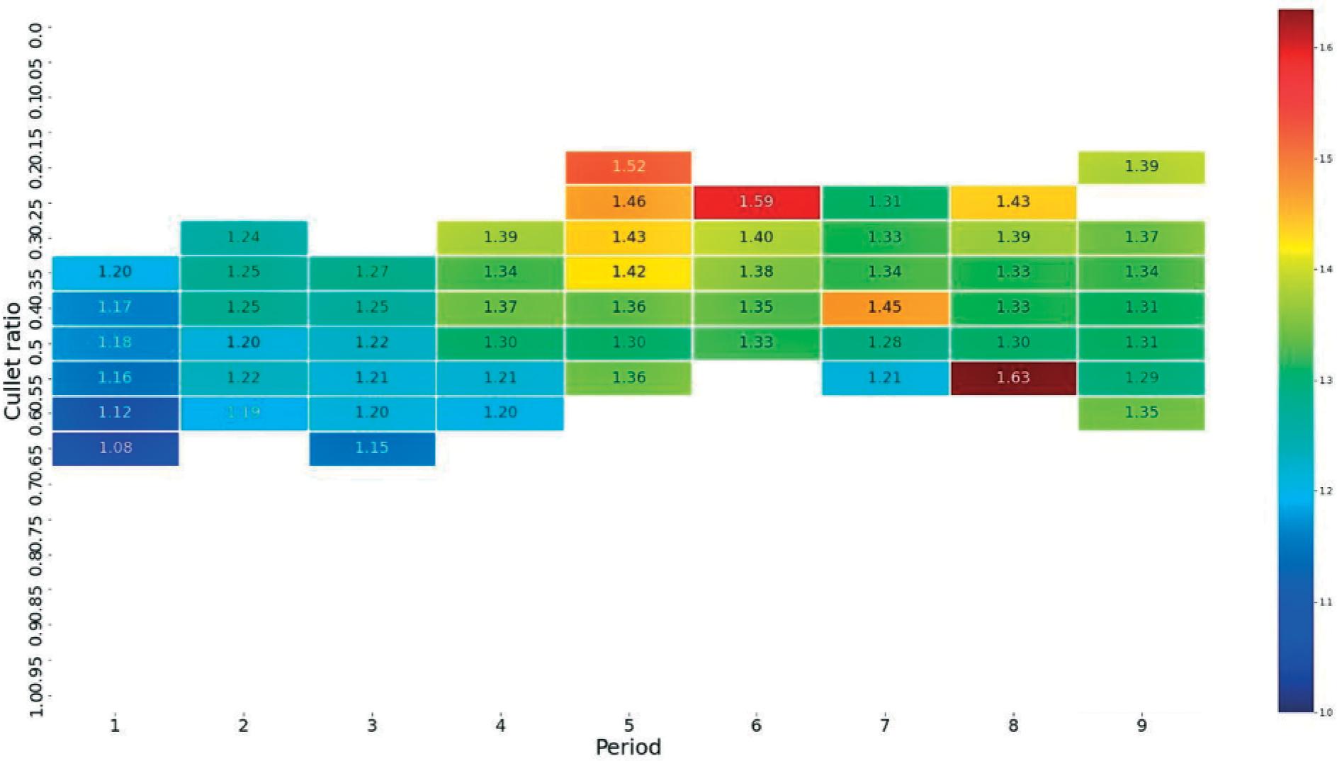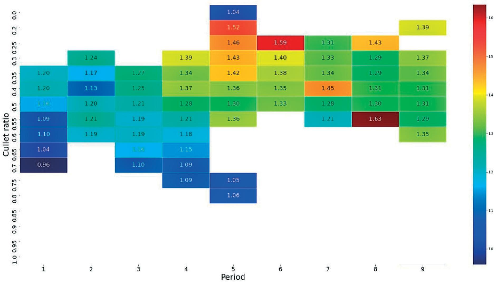 Dataframe with melting of particular glass colors over several years for the analyzed furnace