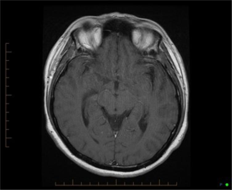 Pictured above is the patient’s admission MRI, which also showed subtle changes indicative of TB Meningitis.