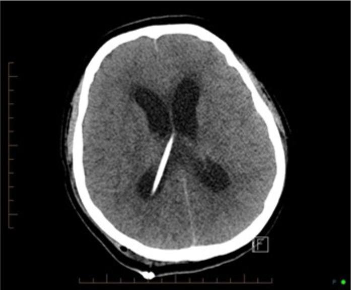 The final day commenced on the night shift of 1st-2nd March. It began with the previous shift handing over that Mr X’s current GCS was 10 (E4 V1 M5), with a high respiratory and heart rate. During the night shift, Mr X’s GCS dropped further, eventually reaching a GCS of 6, with sluggish pupils and vitals increasing significantly. At this point, another medical review was called. Throughout this period, the patient’s EVD remained patent, ruling out further hydrocephalus as the cause. Despite reluctance from teams, an intensive care team was eventually called, and an urgent CT head was arranged. To note, at this point, the patient was still for full resuscitation despite the potential poor outcomes. The patient’s wife was then contacted, she was informed of her husband’s status, and she arrived at the hospital to join his parents at his bedside. By 0645hrs, the patient’s GCS remained at 6, however he had become vitally more unstable, with a notable temperature of 39.5°C and heart rate of 189 beats per minute, with a non-responsive right pupil. Shortly after, he was accompanied to his CT scan.