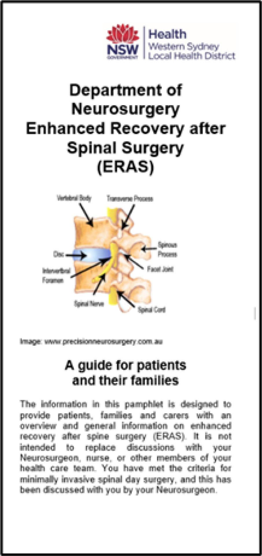 Information booklet provided to patient and carer in Pre-Admission Clinic
