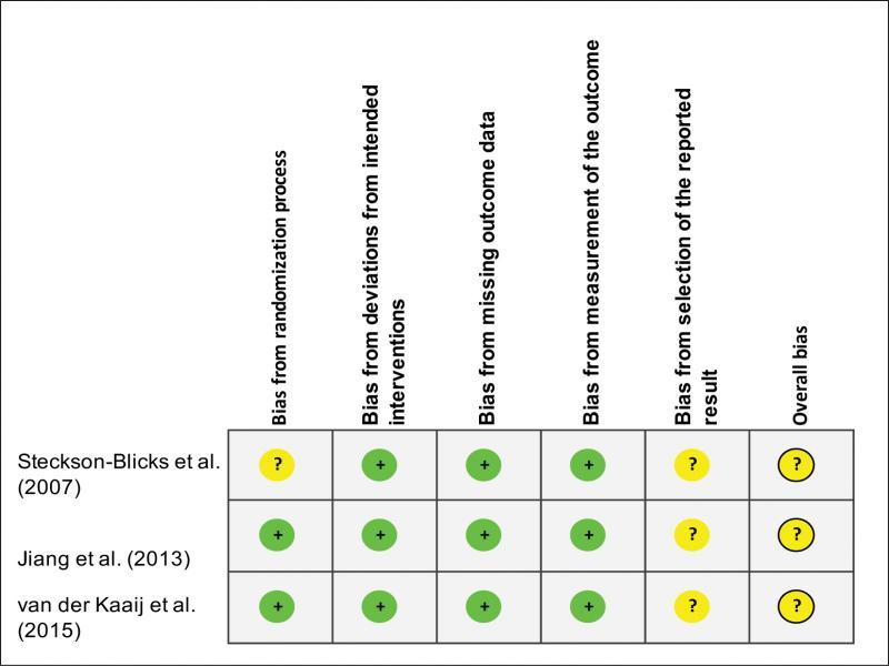 | Steckson-Blicks et al. (2007) | Some concerns | Low | Low | Low | Some concerns | Some concerns |