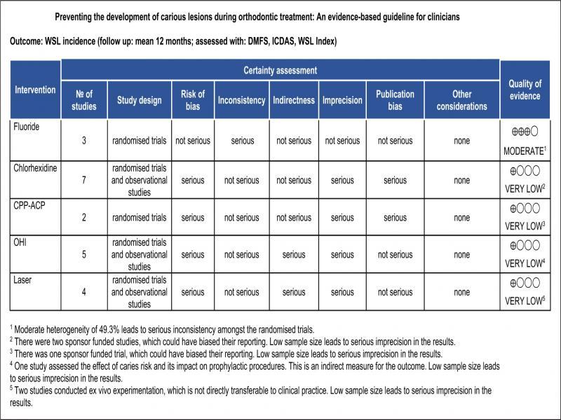 | Sardana et al (2019) | Y | Self applied F | RCTs and quasi-RCTs | Y | Y | N | During and post-orthodontic studies included without sub group analyses. Both control and intervention are F. |