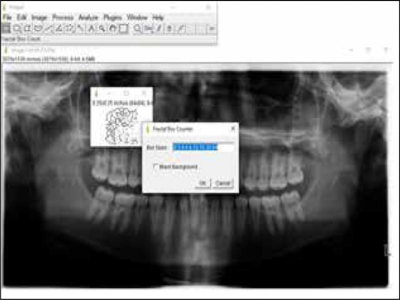 By applying FD on 2D radiographs previous studies have identified changes in bone morphology 1,14 and reported that higher fractal measurements indicate a complex bone structure with fewer trabeculae. 15,16 The most used and suitable method in the application of fractal analysis is the box counting method 14 defined by Russel et al. 17