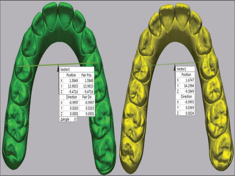 Since a particularly noteworthy application of this technology is to allow a comparison of the predicted treatment outcome with the actual outcome, as demonstrated by Goh et al., 21 the following examples are based on the predicted outcome derived from the ClinCheck® process. This will be termed the reference model, and the clinically achieved outcome termed the measured model. Depending on the desired measurements to be investigated, any models of the same arch in a treatment sequence could be used.