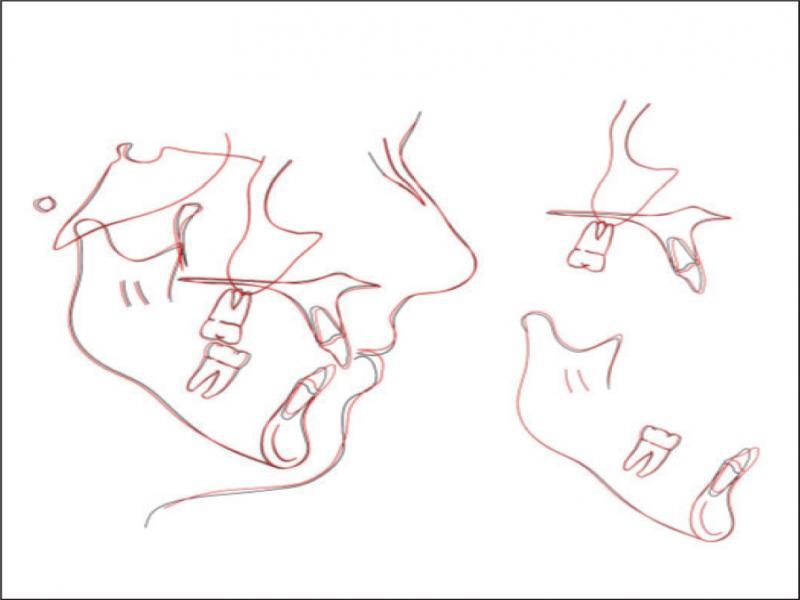 Cephalometric superimposition (Bjork) pretreatment vs prefinish.