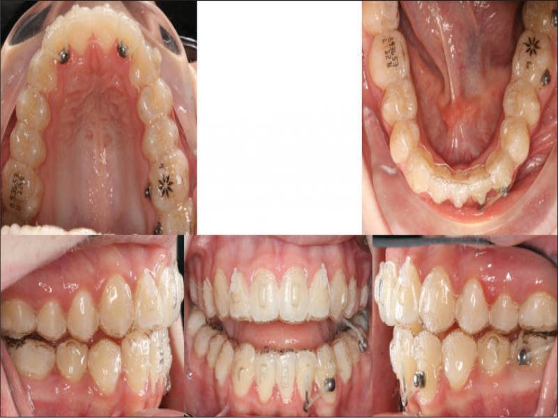 Aligner treatment, augmented by auxiliary treatment to address the noted movement shortfalls, allowed achievement of the biomechanical treatment goals:
