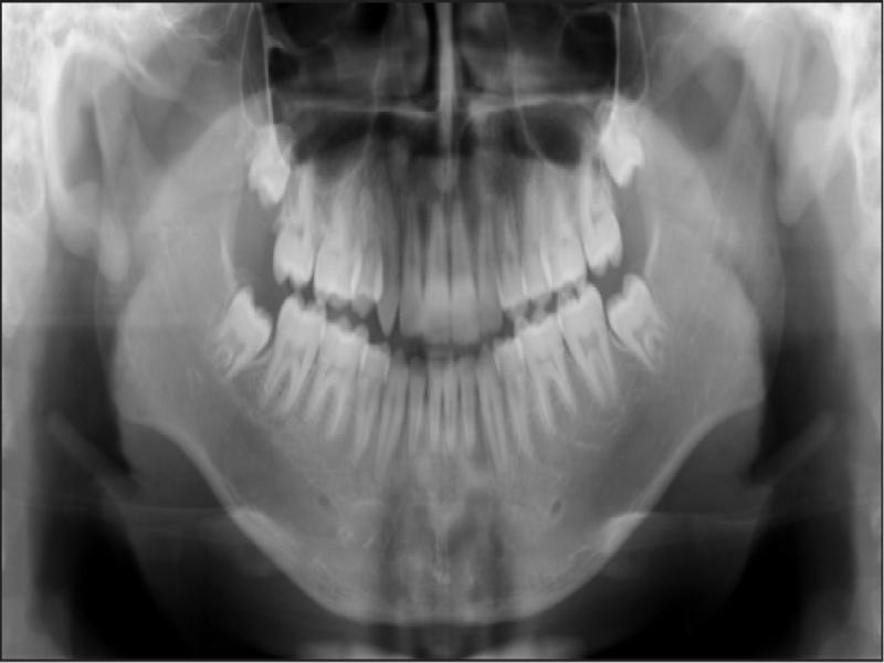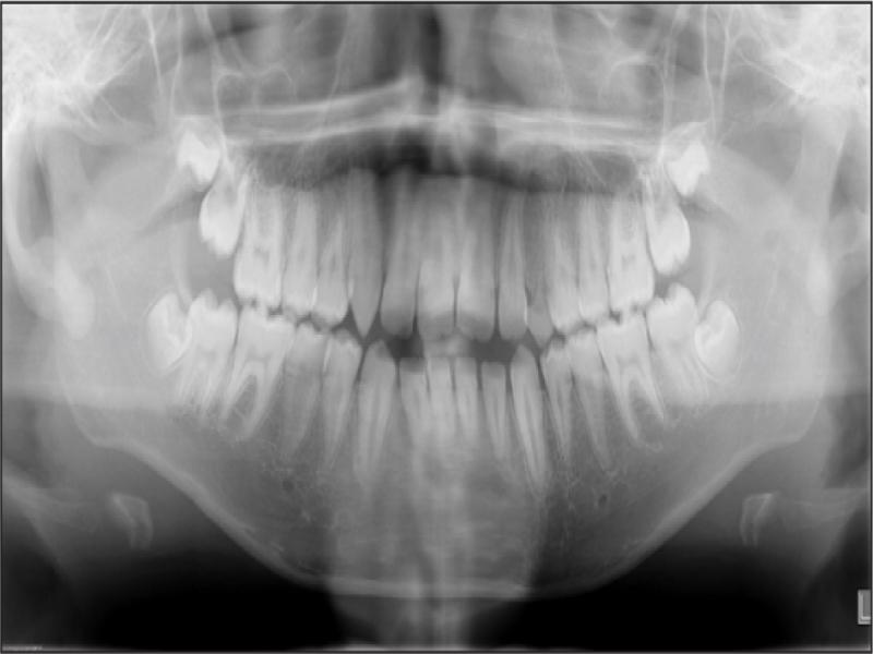 Panoramic radiograph taken at the debond visit (age 15 years, 3 months).