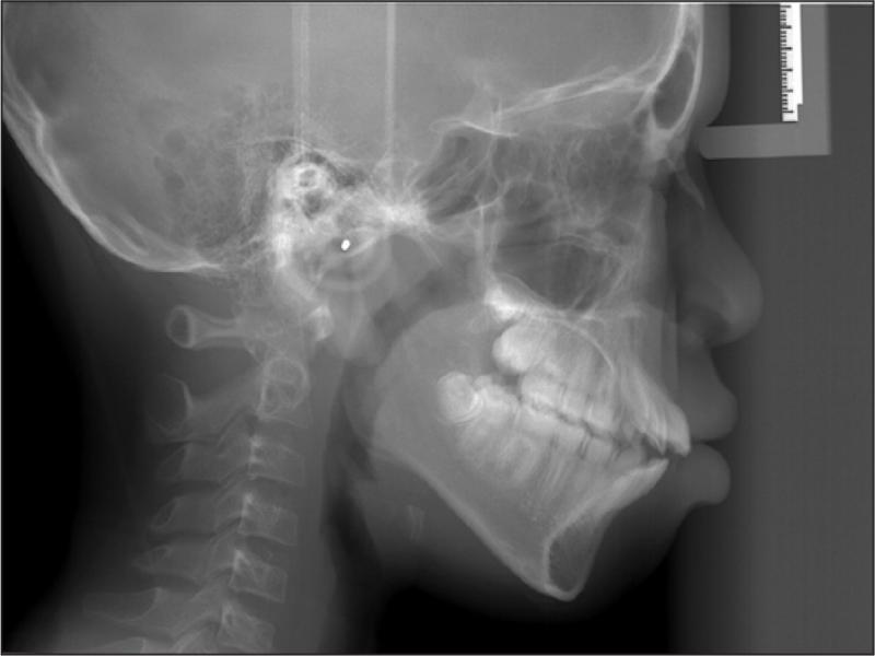 Lateral cephalogram taken at the debond visit (age 15 years, 3 months).