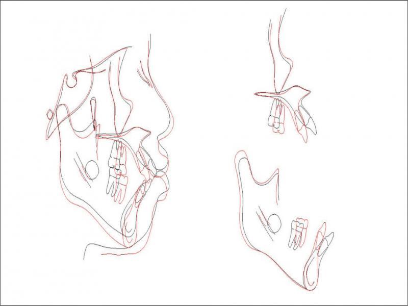 Cephalometric superimposition of before and after treatment